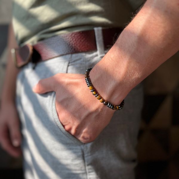 Díky nastavitelnému designu, který se hodí na zápěstí od 15 do 28 cm, je náramek vhodný pro každého. Nabízí pohodlné a přizpůsobené nošení, které je ideální pro každodenní nošení. Náramek je vyroben z lávových korálků a je hyperalergenní. Ani při pravidelném nošení se nemusíte obávat vyblednutí, podráždění pokožky nebo zabarvení zápěstí. Lehký a odolný náramek nabízí elegantní vzhled, který vzdoruje času.