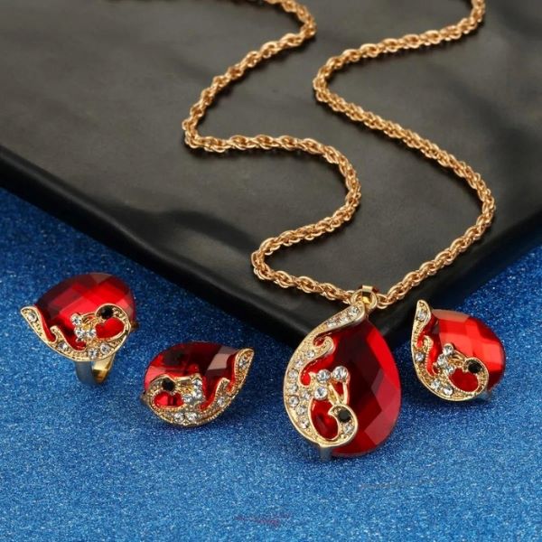 Objevte dokonalou kombinaci elegance a sofistikovanosti se sadou skládající se z hodinek, náramku, náušnic, prstenu a náhrdelníku v okouzlující červené barvě. Tato krásná sada je vytvořena pro ženy, které chtějí vyniknout a zazářit v každém okamžiku.