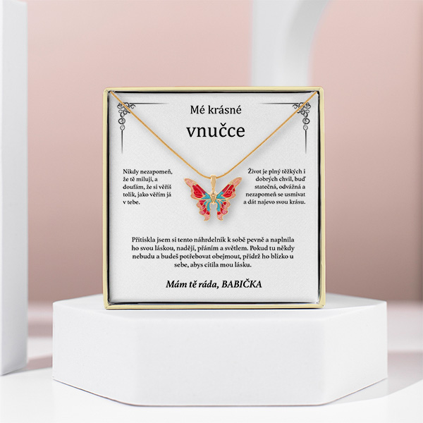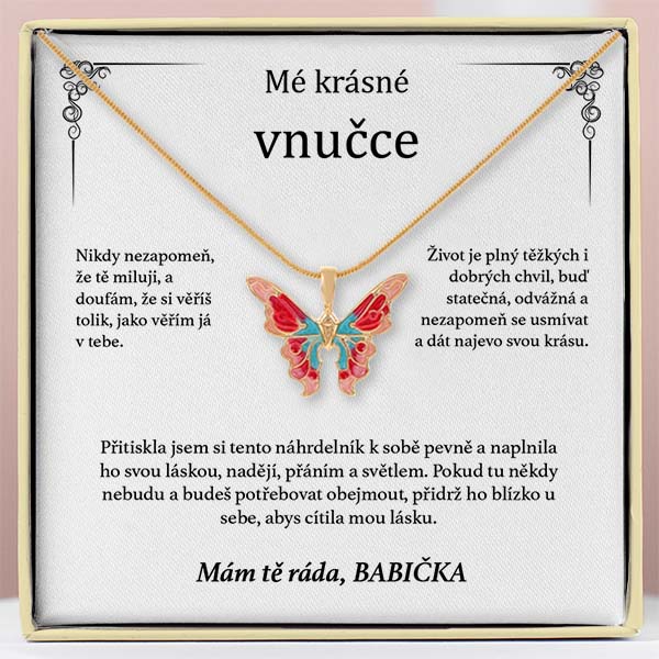 Jedinečný design: Náš náhrdelník se pyšní barevným přívěskem ve tvaru motýla, který je stylový a hezký zároveň. Proces kapání oleje mu propůjčuje spektrum zářivých barev, což z něj činí skutečné umělecké dílo. 🌈🖌️