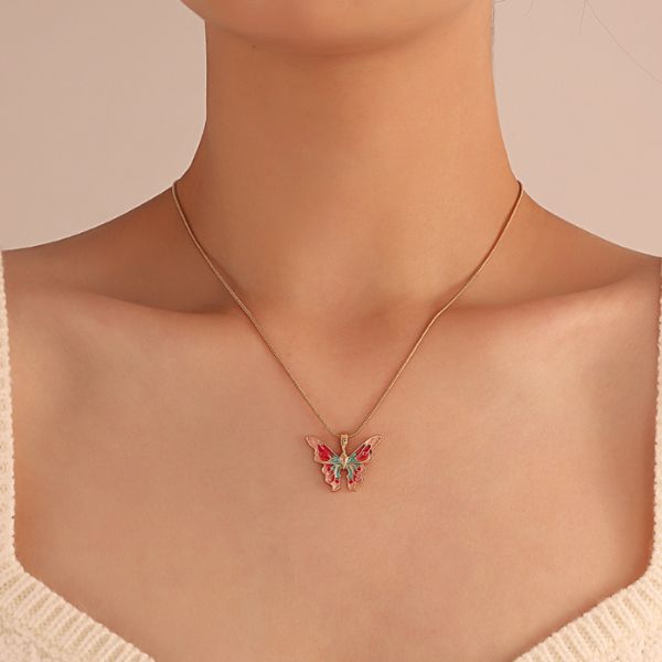 Vyzdvihněte svůj styl s naším zářivým náhrdelníkem s přívěskem barevného motýla 🦋, který je ztělesněním stylu a krásy. Tento nádherný šperk je opatřen inovativním procesem kapání oleje, který mu dodává ohromující příval barev, který je stejně poutavý jako stylový. 💖